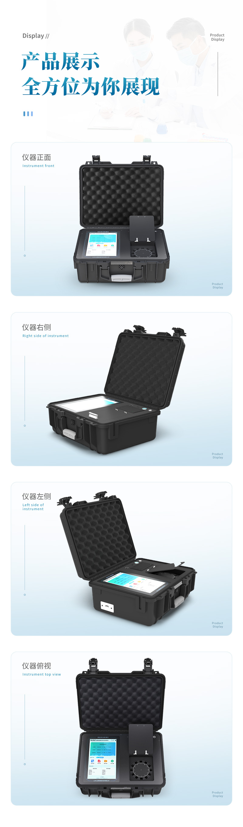 | 儀器采用手提式一體化系統(tǒng)檢測技術(shù),將分光光度模塊、膠體金檢測模塊、新型農(nóng)殘檢測模塊、數(shù)字化管理模塊、無線通訊模塊高度集成于一體,支持檢測200種食品安全檢測項目,同時預(yù)留升級檢測方法。 | 儀器檢測模塊標準化、智能化,檢測項目可隨意自由組合。檢測箱體內(nèi)置多個標準檢測單元,檢測模塊可以調(diào)整配置。 | 顯示屏幕:儀器采用10.1英寸豎向液晶觸摸屏顯,搭配運行安卓智能操作系統(tǒng),主控芯片采用ARM Cortex-A7,RK3288/4核處理器,主頻1.88Ghz,操作方便,性能更強。 | 檢測通道:≥12通道;采用精密旋轉(zhuǎn)比色池設(shè)計,使用同芯片同光源校準精度,解決不同光源之間的誤差值,更加準確**。(1-12通道間誤差0.1%,**號:ZL202022821055.2) | 儀器光源:高精度進口四波長冷光源,每個通道均配置 410、520、590、630nm 波長光源,標配**的光路切換裝置,**光路切換功能可實現(xiàn)64波長,并且所有檢測項目可實現(xiàn)所有通道同時檢測。 | 設(shè)備可一鍵校準,自動保存校準數(shù)據(jù),自動對比校驗,得到精準光源,采用Android SP存儲數(shù)據(jù),光源數(shù)據(jù)永不丟失,方便每一次使用。 | 通訊接口:配備無線通信模塊、4G(APN)通訊模塊、藍牙傳輸,同時具有雙USB接口以及RJ45網(wǎng)線接口,可以多方式實現(xiàn)數(shù)據(jù)保存及數(shù)據(jù)傳輸 | 存儲方式:支持U盤存儲,標準USB接口,免驅(qū)動安裝。檢測結(jié)果存儲容量20萬條以上,可生成Excel表格進行拷貝,并具有登錄保護功能。 | 智能化操作系統(tǒng): | 1)操作系統(tǒng):儀器可在同一檢測界面自動對應(yīng)相關(guān)檢測通道,一次性選擇1-12個樣品名稱,無需退出界面,節(jié)省操作時間。并可以對每個通道屬性和樣品信息單獨進行編輯,例如送檢單位、人員,檢測人員等,打印時勾選打印顯示。 | 2)數(shù)據(jù)集成系統(tǒng):設(shè)備首頁自動匯總分析檢測數(shù)據(jù),包含:周檢測數(shù)據(jù)、月檢測數(shù)據(jù),全部檢測總數(shù)量,均包含檢測總數(shù),合格數(shù),不合格數(shù),以及相關(guān)柱形分析圖,各項檢測數(shù)據(jù)一目了然,無需電腦查詢,更加快捷直觀。 | 3)數(shù)據(jù)庫系統(tǒng):十幾項數(shù)據(jù)庫分類管理儀器:包含項目類型、項目數(shù)據(jù)、檢測數(shù)據(jù)、歷史記錄、國標信息、曲線信息、采樣信息、檢測信息、受檢信息、復核信息、圖表信息、光源校準信息、打印樣式信息、樣品庫信息等等,數(shù)據(jù)庫之間互相協(xié)調(diào)聯(lián)動保證數(shù)據(jù)的真實完整性。同時產(chǎn)品數(shù)據(jù)庫以及歷史檢測記錄支持一鍵檢索功能。 | 4)限量規(guī)判系統(tǒng):具有限量查詢、添加物質(zhì)合規(guī)判定系統(tǒng)。檢測出結(jié)果后,系統(tǒng)自動調(diào)用系統(tǒng)數(shù)據(jù)庫中相關(guān)國標進行比對判定,客觀顯示判定結(jié)果是否合格。 | 5)項目預(yù)設(shè)系統(tǒng):儀器具有任務(wù)預(yù)設(shè)模塊,一鍵提前預(yù)設(shè),給出方便快捷的新檢測方案,每一個任務(wù)分別可以設(shè)置不同的樣品、批次、編號、來源、備注、抽樣信息、檢測信息、受檢信息、復核信息等更多信息。樣品送檢時一鍵調(diào)取保存信息,并可多次調(diào)取,大大提高檢測效率。 | 6)數(shù)據(jù)監(jiān)管系統(tǒng):同步對接監(jiān)管平臺,數(shù)據(jù)可局域網(wǎng)和互聯(lián)網(wǎng)數(shù)據(jù)上傳,檢測結(jié)果可選擇直接傳至食品安全監(jiān)管平臺。進行區(qū)域食品安全監(jiān)管及大數(shù)據(jù)分析處理與數(shù)據(jù)統(tǒng)計,檢測區(qū)域食品安全長短期動態(tài),達到食品安全問題預(yù)估、預(yù)警。 | 7)打印系統(tǒng):內(nèi)置全新打印機,新創(chuàng)自定義打印方式,可按需靈活勾選控制:產(chǎn)品合格證(國家農(nóng)業(yè)部標準要求),二維碼,抽樣信息、檢測信息,受檢信息、復核信息、抽樣日期、檢測日期等信息的打印。 | 供電模式:儀器交直流兩用,直流12V供電,可連接車載電源,可配6ah大容量充電鋰電池,電量可實時顯示,方便戶外流動測試。 | 膠體金檢測模塊:采用雙通道CMOS成像處理技術(shù)及膠體金免疫層析技術(shù),可同時讀取雙膠體金卡數(shù)據(jù),自動采集、處理分析,將檢測結(jié)果顯示,并可根據(jù)參考限值自動判斷檢測結(jié)果,可檢測常見的獸藥殘留、生物毒素、抗生素、違禁添加物等。 | 1)探測技術(shù):CMOS成像探測; | 2)檢測通道:1個通道; | 3)檢測方式:消線法和比色法; | 4)顯示模式:陰性或陽性; | 5)曲線形式:軌道式掃描方式,顯示金標卡圖像,實時生成、識別CT曲線圖,無需手動調(diào)整,完成檢測后自動退出檢測卡。兼容市場上其他金標卡,使用耗材不受限制。 | 儀器加入遠程升級功能,可定向分客戶分儀器更新,開機后自動更新,客戶無需任何操作,即可升級全新項目。做到了無需退換機器即可實現(xiàn)實時遠程升級檢測儀器。 |