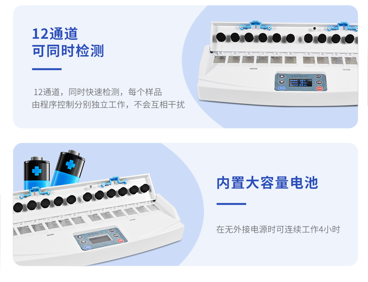 | ◆ 12通道,同時(shí)快速檢測(cè),每個(gè)樣品由程序控制分別獨(dú)立工作,不會(huì)互相干擾 | ◆ 儀器體積小、重量輕、無(wú)配件,方便攜帶 | ◆ 操作快捷,尤其適合現(xiàn)場(chǎng)使用 | ◆內(nèi)置大容量電池,在無(wú)外接電源時(shí)可連續(xù)工作4小時(shí) | ◆ 提供完備的附件配置,采用美觀、耐用的鋁合金包裝箱 | ◆ 采用新型儀器結(jié)構(gòu)設(shè)計(jì),體積小,便于攜帶。無(wú)機(jī)械移動(dòng)部件,抗干擾、抗振動(dòng),檢測(cè)精度高,儀器壽命長(zhǎng) |