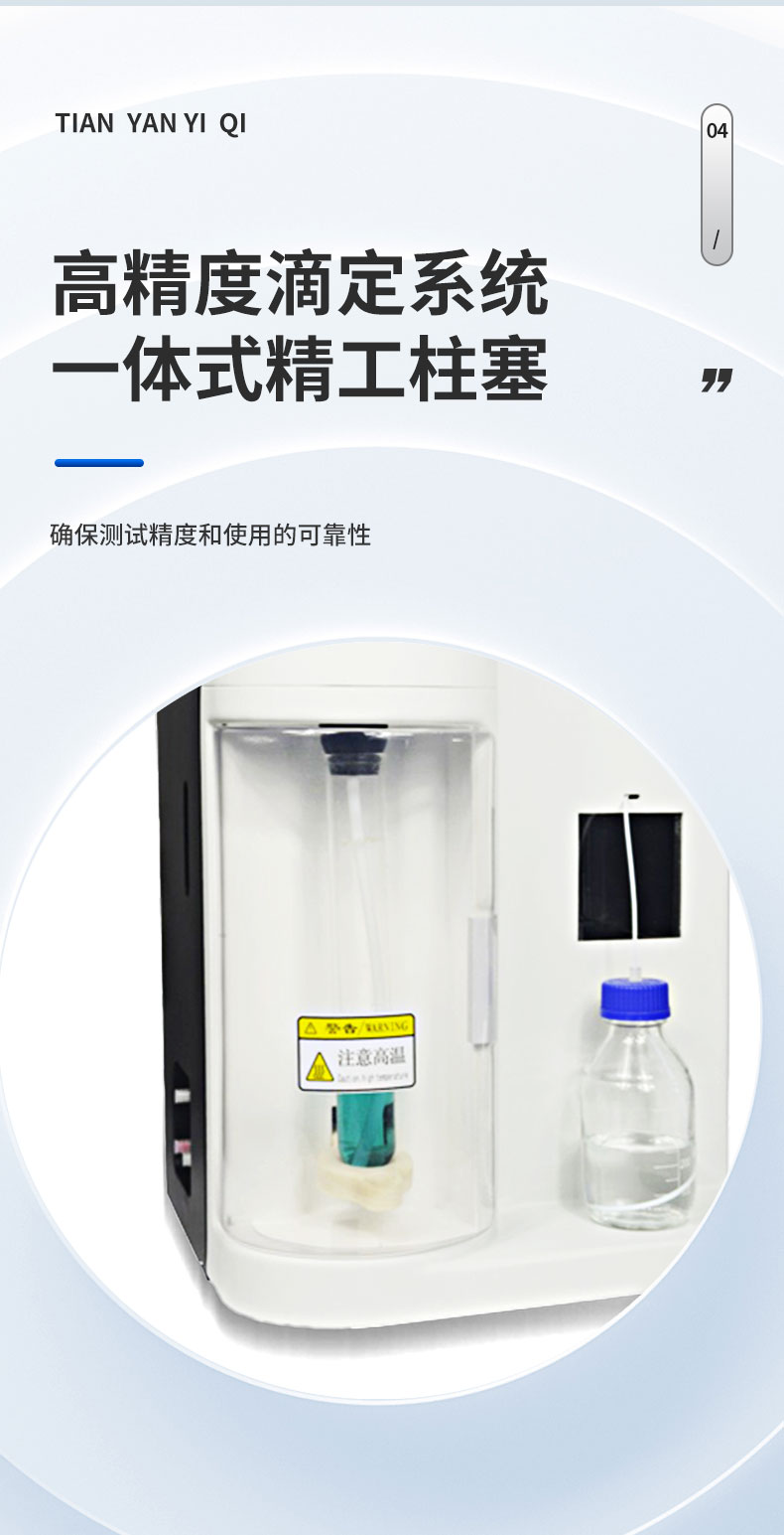 | 1. 采用國家標(biāo)準(zhǔn)的凱氏定氮方法,濃硫酸環(huán)境消解樣品、堿性環(huán)境蒸汽蒸餾、硼酸吸收、指示劑滴定終點(diǎn)顏色判斷法。并參與國家標(biāo)準(zhǔn)GB/T22923-2008、官方JJF109-2012《定氮儀校準(zhǔn)規(guī)范》的起草; | 1. ☆全自動添加試劑、全自動蒸餾滴定、滴定杯全自動排廢清洗、全自動校正、全自動故障檢測、全自動溶液液位監(jiān)測、全自動計(jì)算、數(shù)據(jù)存儲、測試報(bào)告生成; | 2. 彩色液晶觸摸屏,蒸餾時(shí)間與試劑添加通過屏幕設(shè)定,條件可自動保存; | 3. 滴定顏色可自動與手動校準(zhǔn)。滴定終點(diǎn)判定采用高精度的十六位三基色數(shù)字信號顏色傳感器采集顏色信號。 | 4. 2.0μL的高精度滴定系統(tǒng),專業(yè)的一體式精工柱塞。確保測試精度和使用的可靠性。 | 5. 彩色液晶觸摸屏,中英文操作界面可選,實(shí)時(shí)監(jiān)測和顯示實(shí)驗(yàn)過程,條件可自動保存; | 6. 可存儲完整的測試數(shù)據(jù)1000組; | 7. 全自動故障檢測和提示:安全門、消化管到位監(jiān)測和提示,試劑液位監(jiān)測和提示,蒸汽爐液位和溫度檢測和提示; | 8. 采用成熟穩(wěn)定的蒸汽發(fā)生器技術(shù),自動預(yù)熱、補(bǔ)水,自動控制蒸汽壓力,自動防干燒,自動清洗; | 9. 自動控制蒸汽壓力在安全范圍之內(nèi),遠(yuǎn)離蒸汽過壓危險(xiǎn); | 10.雙蒸餾模式,手動與自動任意切換; | 11.☆堿泵采用高可靠的聚四氟乙烯風(fēng)箱泵,專用防腐蝕,耐顆粒堵塞,加液穩(wěn)定,負(fù)壓抽吸無危險(xiǎn); | 12.節(jié)水設(shè)計(jì),冷卻水流量1.5L/min, 冷卻水只在蒸餾過程開啟,冷卻水流量實(shí)時(shí)監(jiān)控,低水壓報(bào)警顯示,停水自動終止運(yùn)行; | 13.貼合氨逸出規(guī)律特殊設(shè)計(jì)的蒸餾系統(tǒng),確保高可靠的測試回收率; | 14.消化管周邊設(shè)施智能化設(shè)計(jì),透明亞克力保護(hù)罩,將危險(xiǎn)徹底隔離; | 15.蒸汽發(fā)生器具有壓力傳感器、溫度傳感器、溫度保護(hù)開關(guān)、水位雙重檢測等多重保護(hù); | 16.儀器具備自檢功能、具備一鍵重置。 | 17.☆試劑桶液位監(jiān)測,保證實(shí)驗(yàn)過程不出現(xiàn)缺液問題。 | 18.☆高分子材料防濺瓶設(shè)計(jì)。 |