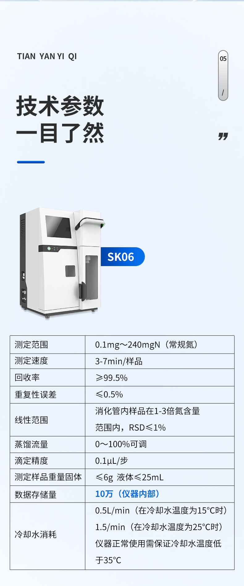 用于檢測食品、藥品、土壤、化工、農(nóng)業(yè)、林業(yè)、材料、環(huán)境監(jiān)測等領(lǐng)域氮含量或蛋白質(zhì)含量測定、陽離子交換量測定。