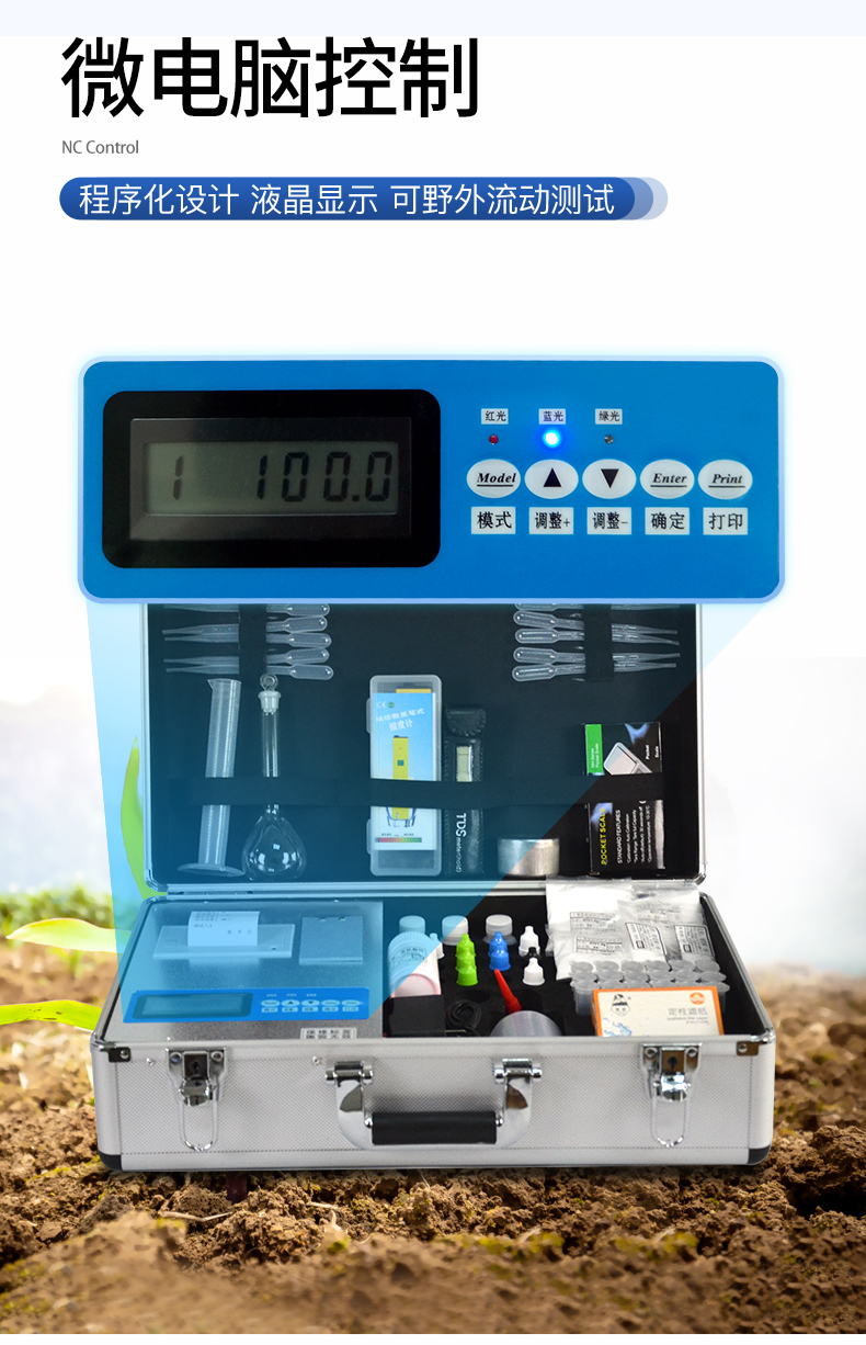 產(chǎn)品簡(jiǎn)介: 配套齊全:該儀器集藥、器、儀為一體,攜帶方便,相當(dāng)于一個(gè)小型移動(dòng)實(shí)驗(yàn)室,無(wú)需用戶(hù)自配附件,亦可靈活野外流動(dòng)測(cè)試。適于農(nóng)業(yè)服務(wù)部門(mén)或農(nóng)資經(jīng)銷(xiāo)商、高教院校、科研院所、合作社、肥料廠(chǎng)商、大種植戶(hù)測(cè)土施肥和鑒別肥料真假及環(huán)保檢測(cè)應(yīng)用。 檢測(cè)功能全:測(cè)試項(xiàng)目國(guó)內(nèi)外全面,除標(biāo)