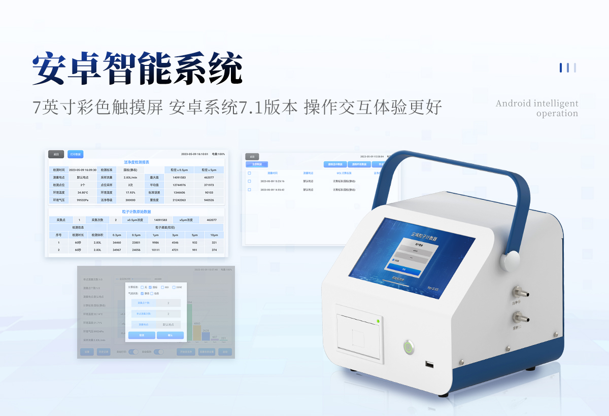 | 1、安卓系統(tǒng)7.1版本,操作交互體驗(yàn)更好。 | 2、內(nèi)置溫濕度傳感器、環(huán)境氣壓傳感器 | 3、核心部件光散射傳感器明顯消除腔體的雜散光,信噪比大為提高。從而使測(cè)量更準(zhǔn)確更可靠。 | 4、按95%置信度(UCL)計(jì)算,計(jì)數(shù)結(jié)果可換算成m3和ft3 | 5、依照凈化級(jí)別劃分和規(guī)定,自動(dòng)判定凈化級(jí)別,使用便利。 | 6、帶審計(jì)追蹤功能,可查詢、可追溯、可控制,符合FDA 21CFR PART11規(guī)范 | 7、支持wifi、藍(lán)牙傳輸,數(shù)據(jù)可無線上傳;同時(shí)支持U盤拷貝數(shù)據(jù),免驅(qū)動(dòng)插拔。 | 8、配置監(jiān)管平臺(tái),檢測(cè)結(jié)果可直接無線傳至平臺(tái),進(jìn)行潔凈度長(zhǎng)短期分析,輔助管理。 | 9、內(nèi)置新一代高速熱敏打印機(jī),可選擇所需要打印的粒徑通道,靈活打印結(jié)果。 | 10、交直流兩用,內(nèi)置充電鋰電池,環(huán)保耐用可支持連續(xù)采樣6小時(shí)以上。 | 11、便捷簡(jiǎn)易伸縮式云臺(tái)支架,安裝采樣操作更加方便。 |