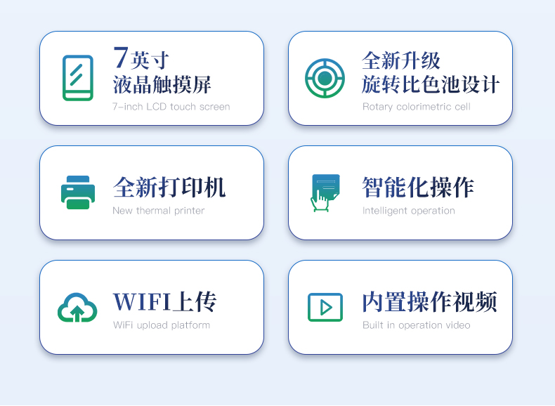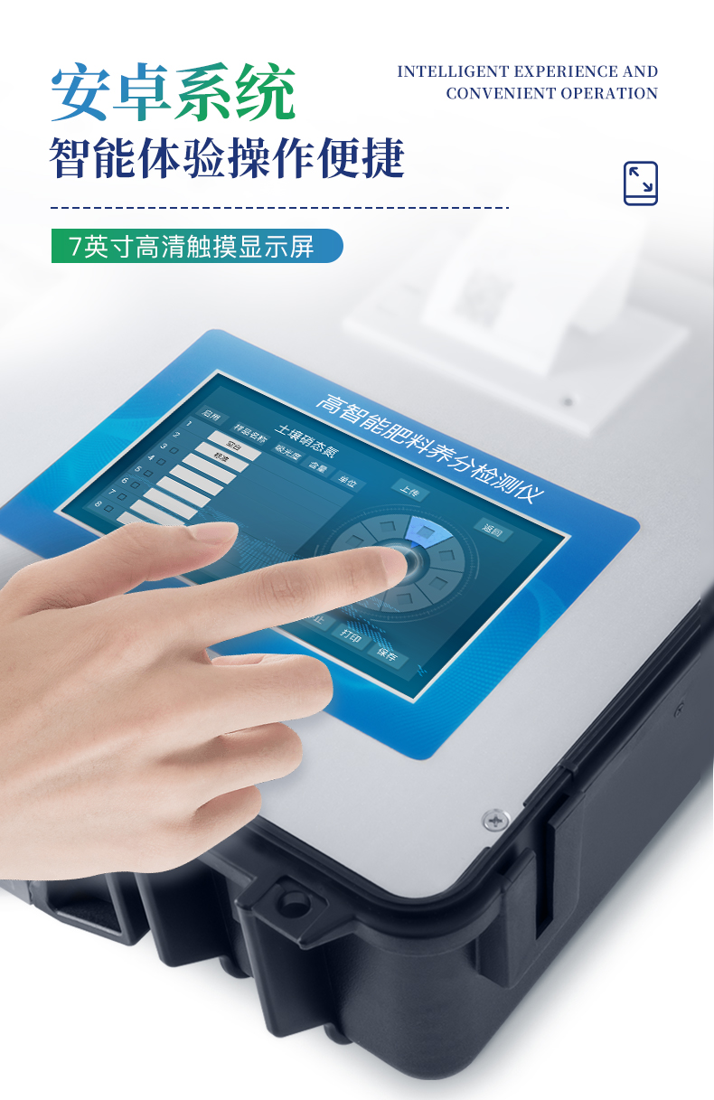 | 可檢測化肥、有機(jī)肥(含葉面肥、水溶肥、噴施肥等)、植株中的速效氮、速效磷、有效鉀、全氮、全磷、全鉀、有機(jī)質(zhì)、酸堿度,鈣、鎂、硫、鐵、錳、硼、鋅、銅、氯、硅、鉬等各種中微量元素以及鉛、鉻、鎘、汞、砷、鎳、鋁、氟、鈦、硒等各種重金屬含量。 | 安卓智能操作系統(tǒng),采用更加**和人性化操作,儀器標(biāo)配wifi聯(lián)網(wǎng)上傳、4G聯(lián)網(wǎng)傳輸、GPRS無線遠(yuǎn)傳,快速上傳數(shù)據(jù)。 | 內(nèi)置作物專家施肥系統(tǒng),可對百余種全國農(nóng)業(yè)、果樹、經(jīng)濟(jì)作物的目標(biāo)產(chǎn)量計(jì)算推薦施肥量,依據(jù)施肥配方科學(xué)指導(dǎo)農(nóng)業(yè)生產(chǎn)。 | 采用精密旋轉(zhuǎn)比色池設(shè)計(jì),光源一致性更加**保證檢測精度。一次性可快速檢測12個(gè)樣品,極大提升檢測效率,降低檢測成本。 | 內(nèi)置植物營養(yǎng)診斷標(biāo)準(zhǔn)圖譜,根據(jù)各農(nóng)作物營養(yǎng)缺失的圖片,進(jìn)行葉面對比,診斷豐缺。 | 采用高精度濾光片技術(shù)自主**分析方法(**號:ZL 2018 2 1777724.7),比色槽部分采用標(biāo)準(zhǔn)1cm比色皿,無機(jī)械位移及磨損,光路測試定位**,保證檢測結(jié)果優(yōu)于國標(biāo)要求。 | 儀器配有數(shù)據(jù)接收平臺,無需數(shù)據(jù)線,數(shù)據(jù)可直接局域網(wǎng)和互聯(lián)網(wǎng)無線上傳,方便進(jìn)行數(shù)據(jù)管理和數(shù)據(jù)長期分析。 | 儀器內(nèi)置新一代高速熱敏打印機(jī),檢測完成可自動打印檢測報(bào)告和二維碼。 | 高靈敏7寸電容觸摸屏,高清晰高交互顯示,大程度降低傳統(tǒng)儀器的繁瑣操作和失誤。 | 每個(gè)通道均配置四波長冷光源,所有光源實(shí)現(xiàn)恒流穩(wěn)壓,保證波長穩(wěn)定。 硅半導(dǎo)體作為信號接收系統(tǒng),壽命長達(dá)10萬小時(shí)級別。重現(xiàn)性好,準(zhǔn)確度高。 | 高強(qiáng)度PVC工程塑料手提箱設(shè)計(jì),堅(jiān)固耐用,便于攜帶,供電方式為交直流兩用,可野外流動測試配套成品藥劑。 |