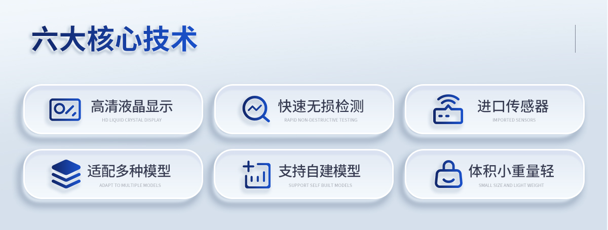 | ◆ 進(jìn)口核心檢測傳感器,性能穩(wěn)定可靠; | ◆ 快速無損檢測,1~3 分鐘內(nèi)出結(jié)果; | ◆ 10 吋觸屏操作簡單,使用方便; | ◆ 適用性廣,可適配多種檢測模型; | ◆ 支持客戶自建模型; | ◆ 體積小、重量輕,便于攜帶; |