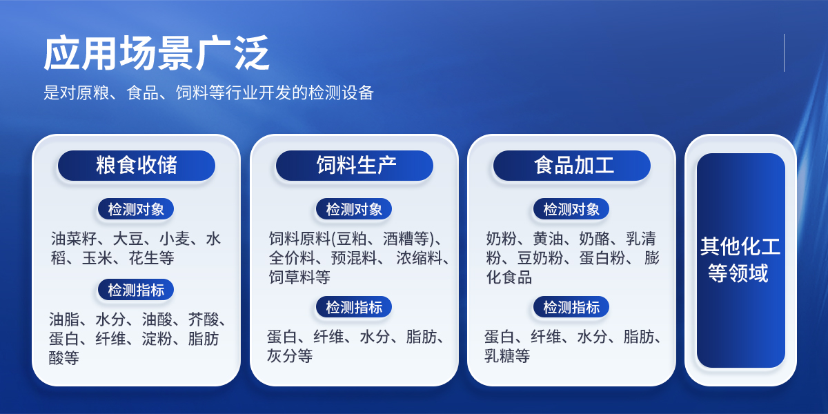 檢測對象:奶粉、黃油、奶酪、乳清粉、豆奶粉、蛋白粉、膨化食品; 檢測指標(biāo):蛋白、纖維、水分、脂肪、乳糖等; | ◆ 其他化工等領(lǐng)域 |