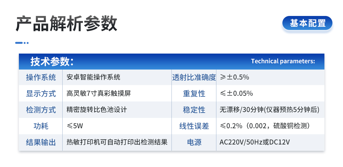 | 1、Android安卓智能操作系統(tǒng),主控芯片采用ARM Cortex-A7,RK3288/4核處理器,主頻1.88Ghz,運(yùn)轉(zhuǎn)速度更快速,穩(wěn)定性更強(qiáng)。 | 2、采用精密旋轉(zhuǎn)比色池設(shè)計(jì),光源一致性更加**,保證檢測(cè)精度。 | 3、12個(gè)旋轉(zhuǎn)檢測(cè)通道,一次性可快速檢測(cè)12個(gè)樣品,極大提升檢測(cè)效率,降低檢測(cè)成本。 | 4、采用高精度濾光片技術(shù)自主**分析方法(**號(hào):ZL 2018 2 1777724.7),**認(rèn)證。 | 5、檢測(cè)過程中內(nèi)置校準(zhǔn)功能,智能恒流穩(wěn)壓,光強(qiáng)自動(dòng)校準(zhǔn),確保檢測(cè)準(zhǔn)確度。 | 6、儀器標(biāo)配wifi無(wú)線上傳、4G聯(lián)網(wǎng)傳輸、GPRS無(wú)線遠(yuǎn)傳,快速上傳數(shù)據(jù)。 | 7、配有云平臺(tái),儀器連入無(wú)線網(wǎng)絡(luò)后,可將檢測(cè)數(shù)據(jù)可選擇性或批量無(wú)線上傳,方便用戶進(jìn)行長(zhǎng)期數(shù)據(jù)管理和可視化分析。 | 2、采用精密旋轉(zhuǎn)比色池設(shè)計(jì),光源一致性更加**,保證檢測(cè)精度。 | 3、12個(gè)旋轉(zhuǎn)檢測(cè)通道,一次性可快速檢測(cè)12個(gè)樣品,極大提升檢測(cè)效率,降低檢測(cè)成本。 | 4、采用高精度濾光片技術(shù)自主**分析方法(**號(hào):ZL 2018 2 1777724.7),**認(rèn)證。 | 5、檢測(cè)過程中內(nèi)置校準(zhǔn)功能,智能恒流穩(wěn)壓,光強(qiáng)自動(dòng)校準(zhǔn),確保檢測(cè)準(zhǔn)確度。 | 6、儀器標(biāo)配wifi無(wú)線上傳、4G聯(lián)網(wǎng)傳輸、GPRS無(wú)線遠(yuǎn)傳,快速上傳數(shù)據(jù)。 | 7、配有云平臺(tái),儀器連入無(wú)線網(wǎng)絡(luò)后,可將檢測(cè)數(shù)據(jù)可選擇性或批量無(wú)線上傳,方便用戶進(jìn)行長(zhǎng)期數(shù)據(jù)管理和可視化分析。 | 8、儀器配同時(shí)具有USB接口、以太網(wǎng)接口,內(nèi)置大容量?jī)?nèi)存,并可隨時(shí)用U盤拷貝數(shù)據(jù)。 | 9、可用手機(jī)隨時(shí)登錄云平臺(tái)在線移動(dòng)查看歷史數(shù)據(jù) | 10、4波長(zhǎng)專業(yè)測(cè)試?yán)涔庠矗t、藍(lán)、綠、橙),光源波長(zhǎng)穩(wěn)定,長(zhǎng)時(shí)間連續(xù)工作光源無(wú)溫漂現(xiàn)象,壽命長(zhǎng)達(dá)10萬(wàn)小時(shí)級(jí)別,重現(xiàn)性好,準(zhǔn)確度高。 | 11、比色池部分采用標(biāo)準(zhǔn)1cm比色皿,無(wú)機(jī)械位移及磨損,光路測(cè)試定位**,有效屏蔽外光干擾,保證檢測(cè)結(jié)果優(yōu)于國(guó)標(biāo)要求。 | 12、儀器系統(tǒng)內(nèi)帶有樣品前處理操作視頻,各種樣品檢測(cè)方法點(diǎn)擊視頻模塊即可觀看,檢測(cè)人員無(wú)需自學(xué)說明書,指導(dǎo)教學(xué)方便快速,方便新手快速操作。 | 13、內(nèi)置新一代高速熱敏打印機(jī)(無(wú)需色帶),打印內(nèi)容包含:檢測(cè)單位、檢測(cè)人員、檢測(cè)項(xiàng)目、通道號(hào)、吸光度、含量(mg/kg)、檢測(cè)時(shí)間、以及二維碼等信息 | 14、高靈敏7寸真彩觸摸屏,采用更加**和人性化操作,高清晰高交互顯示,大程度降低傳統(tǒng)儀器的繁瑣操作和失誤。 | 15、內(nèi)置時(shí)鐘功能,方便操作時(shí)間記錄,長(zhǎng)期歷史追溯。 | 16、可設(shè)置多賬戶賬號(hào)密碼登錄,**UI交互界面,不同的用戶可自由添加編輯檢測(cè)信息,保存后可長(zhǎng)期使用。 | 17、GPS功能:可在野外作業(yè)時(shí)記錄經(jīng)緯度地點(diǎn),滿足特殊用戶需求。 | 18、內(nèi)置低電壓提示功能,可在檢測(cè)時(shí)明確電量,避免測(cè)試數(shù)據(jù)偏移,同時(shí)具有斷電保護(hù)功能,斷電自動(dòng)保存數(shù)據(jù),防止數(shù)據(jù)丟失。 | 19、交直流兩用供電方式,內(nèi)置大容量充電鋰電池,滿電狀態(tài)下可連續(xù)工作10余小時(shí),同時(shí)可外接車載電源蓄電。 | 20、儀器具有中英文切換功能,可滿足出口要求。 | 21、高強(qiáng)度PVC工程塑料手提箱設(shè)計(jì),堅(jiān)固耐用,便于攜帶。 |