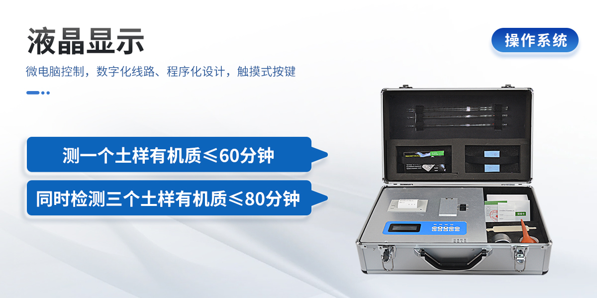 | 配套齊全:土壤有機(jī)質(zhì)速測(cè)儀該儀器集藥、器、儀為一體,攜帶方便,相當(dāng)于一個(gè)小型實(shí)驗(yàn)室。適于農(nóng)業(yè)服務(wù)部門(mén)或農(nóng)資經(jīng)銷(xiāo)商、肥料廠(chǎng)商測(cè)土施肥和鑒別肥料真假。 | 操作簡(jiǎn)便、速度快捷,成品藥劑開(kāi)瓶即用,無(wú)須配置。 | 性能可靠:工作穩(wěn)定性?xún)?yōu)于國(guó)家標(biāo)準(zhǔn)JJG179-90指標(biāo)的6倍,重復(fù)性達(dá)到光柵型分光光度計(jì)指標(biāo)水平。 |