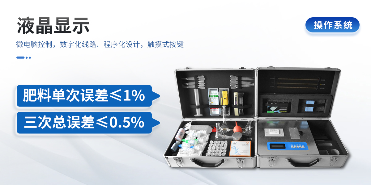 | 肥料養(yǎng)分專用檢測(cè)儀功能全:測(cè)試項(xiàng)目國內(nèi)外*全(各類藥劑均可選購)。 | 配套齊全,該儀器集藥、器、儀為一體,攜帶方便,相當(dāng)于一個(gè)小型實(shí)驗(yàn)室,用戶只需提供蒸餾水即可在要求時(shí)間內(nèi)完成全部操作。適于農(nóng)業(yè)服務(wù)部門或農(nóng)資經(jīng)銷商鑒別肥料真假、肥料廠商肥料生產(chǎn)中控、農(nóng)資質(zhì)檢部門進(jìn)行農(nóng)資打假,規(guī)范農(nóng)資市場(chǎng)。 | 性能可靠:工作穩(wěn)定性優(yōu)于國家標(biāo)準(zhǔn)JJG179-90指標(biāo)的10倍以上,重復(fù)性達(dá)到光柵型分光光度計(jì)指標(biāo)水平。 |