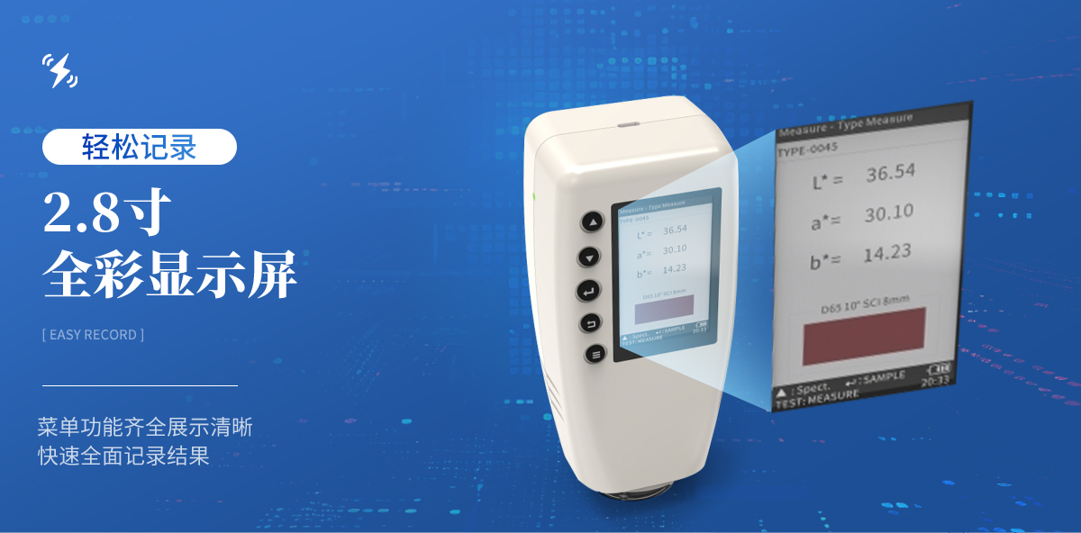 2.8寸全彩顯示屏,可輕松查閱400-700nm每個波段的光譜曲線。 菜單功能齊全展示清晰,快速全面記錄結(jié)果。 顏色標記色差顯示結(jié)果,合格與否一眼便知。 UI設(shè)計清晰明了,不再擔(dān)心誤操作。