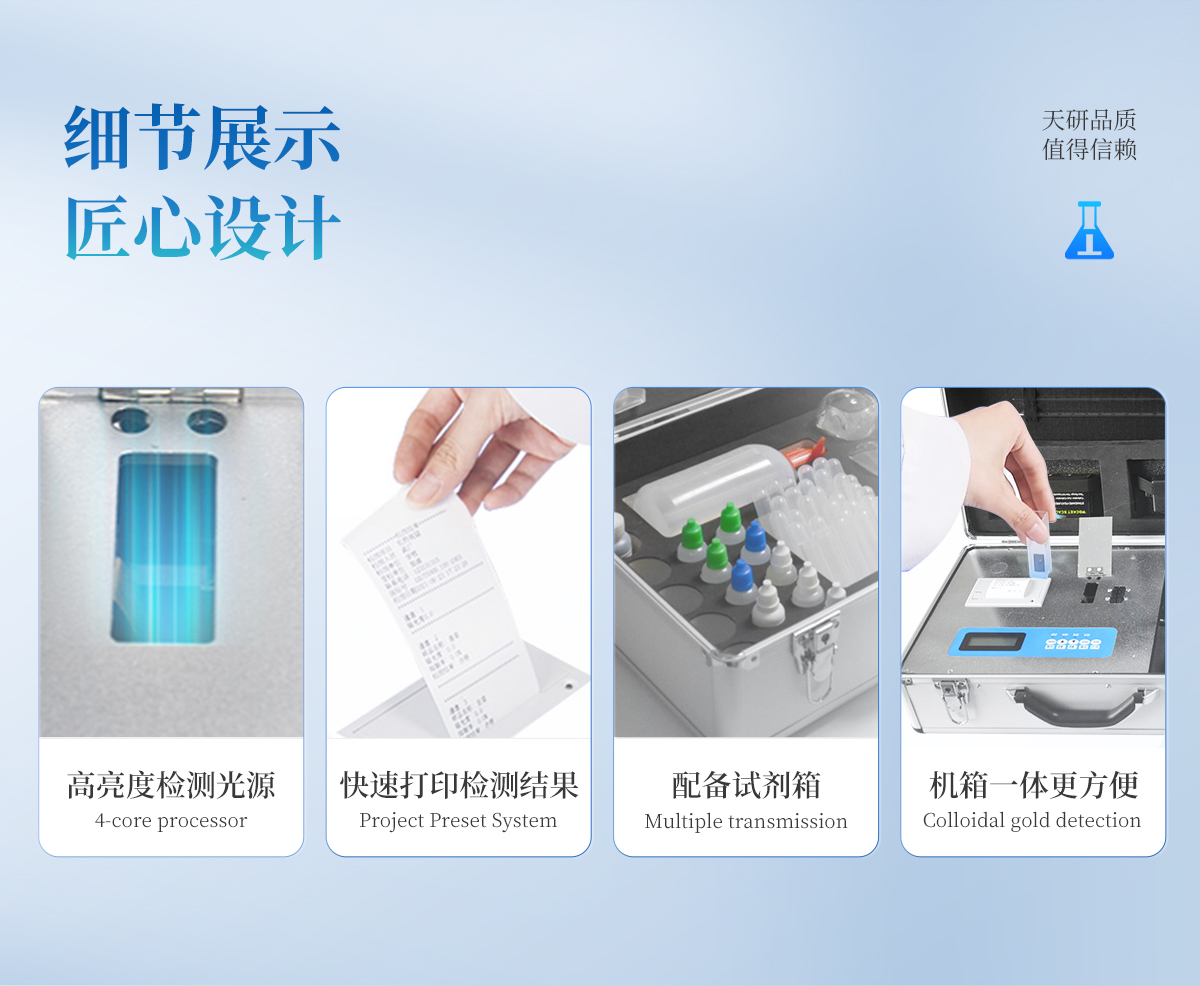 | 可檢測化肥、有機(jī)肥(含葉面肥、水溶肥、噴施肥等)、植株中的有機(jī)質(zhì)、腐殖酸等。 | 安卓智能操作系統(tǒng),采用更加**和人性化操作,儀器標(biāo)配wifi聯(lián)網(wǎng)上傳、4G聯(lián)網(wǎng)傳輸、GPRS無線遠(yuǎn)傳,快速上傳數(shù)據(jù)。 | 采用精密旋轉(zhuǎn)比色池設(shè)計,光源一致性更加**保證檢測精度。一次性可快速檢測12個樣品,極大提升檢測效率,降低檢測成本。 | 儀器配有數(shù)據(jù)接收平臺,無需數(shù)據(jù)線,數(shù)據(jù)可直接局域網(wǎng)和互聯(lián)網(wǎng)無線上傳,方便進(jìn)行數(shù)據(jù)管理和數(shù)據(jù)長期分析。 | 儀器內(nèi)置新一代高速熱敏打印機(jī),檢測完成可自動打印檢測報告和二維碼。 | 高靈敏7寸電容觸摸屏,高清晰高交互顯示,大程度降低傳統(tǒng)儀器的繁瑣操作和失誤。 | 每個通道均配置四波長冷光源,所有光源實現(xiàn)恒流穩(wěn)壓,保證波長穩(wěn)定。 硅半導(dǎo)體作為信號接收系統(tǒng),壽命長達(dá)10萬小時級別。重現(xiàn)性好,準(zhǔn)確度高。 |