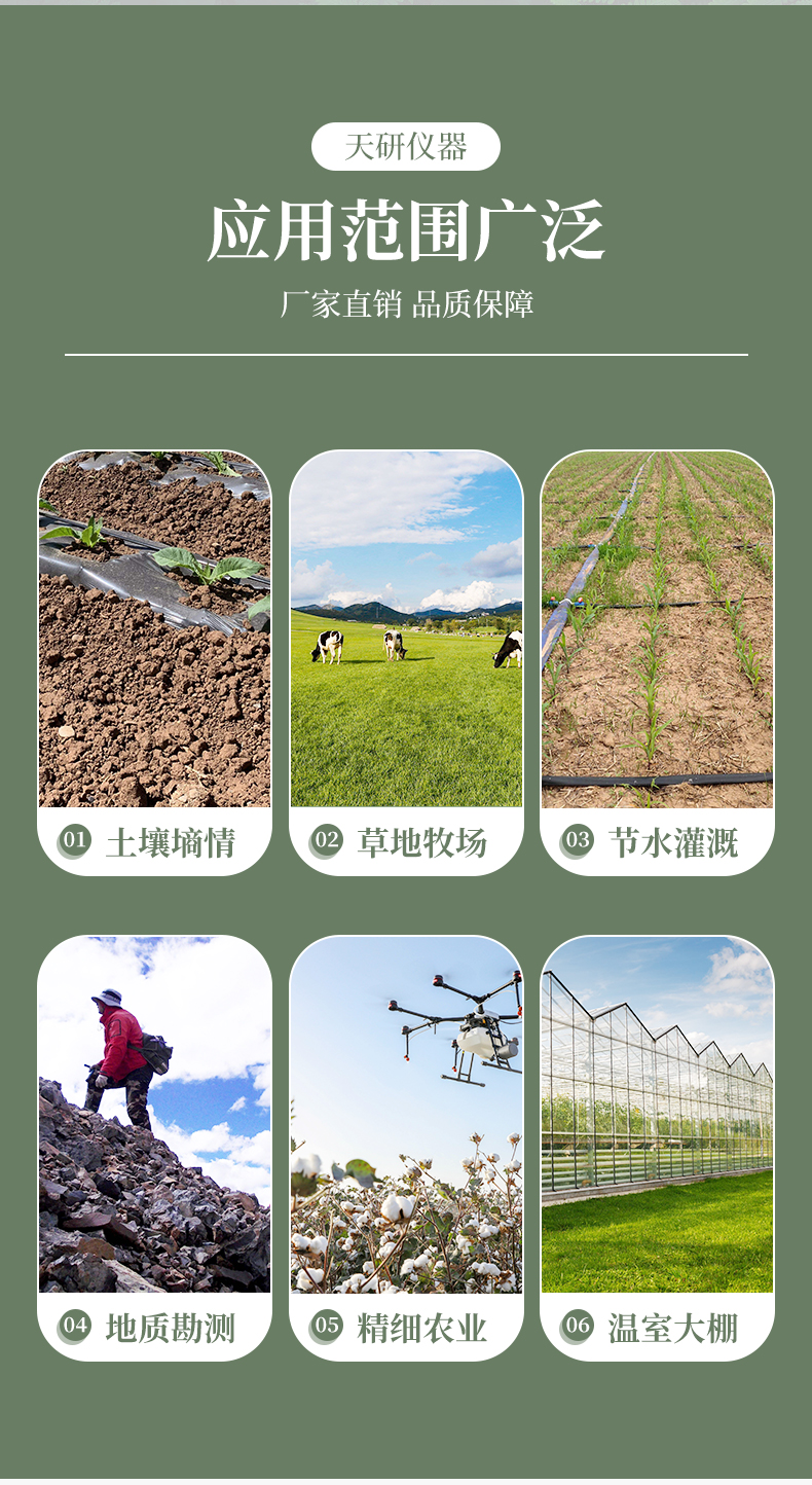 土壤水分溫度鹽分測定儀傳感器采用一體化結構設計,可快速準確測量土壤中含水量、溫度和電導率(鹽分),可對多處樣地、不同土壤深度的水分含量溫度和鹽分進行快速檢測和長期連續(xù)監(jiān)測。廣泛應用于土壤墑情檢測、旱作節(jié)水灌溉、精細農業(yè)、林業(yè)、地質勘探、植物培育、水利、環(huán)保等領域。
